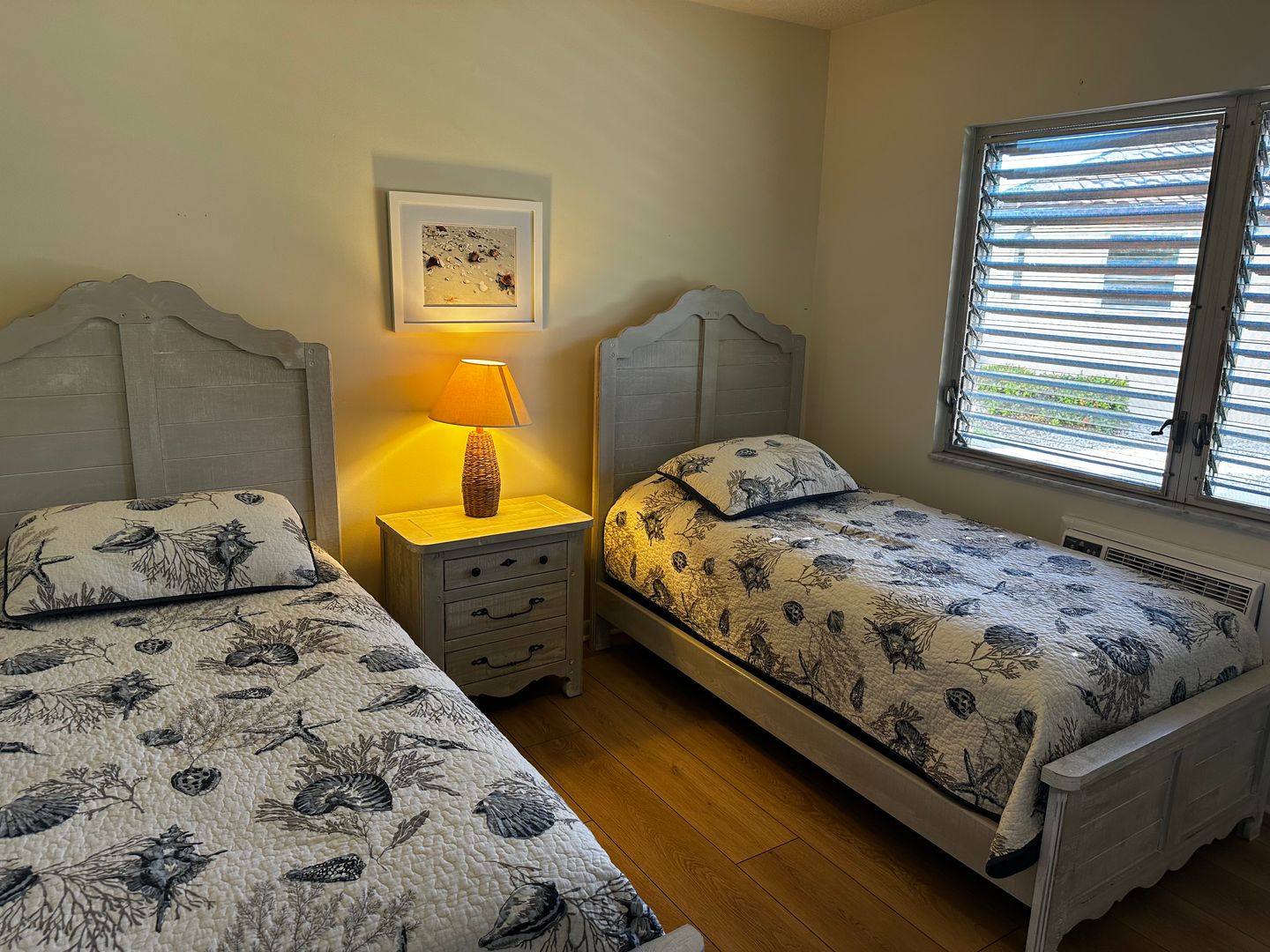 King size bed in Main Bedroom-2 Twin size beds in the Guest Bedroom.