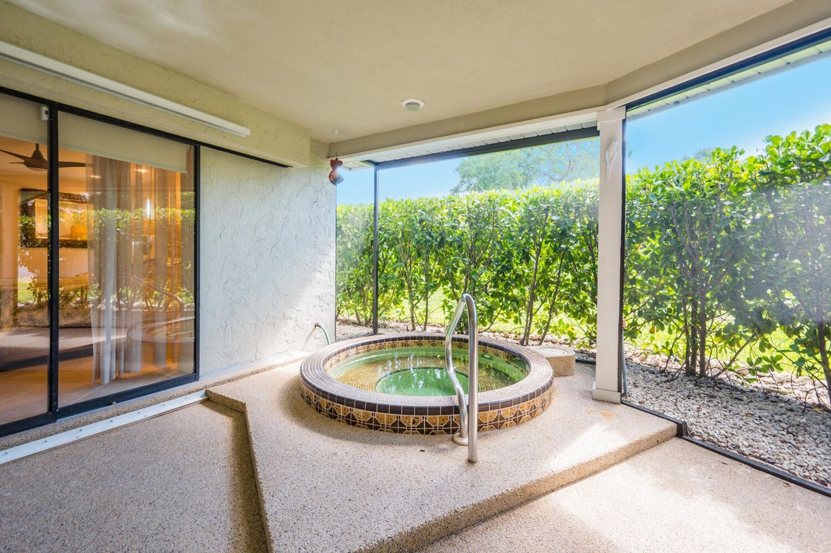 Unwind after a long day in the luxurious hot tub, providing the perfect retreat for relaxation.